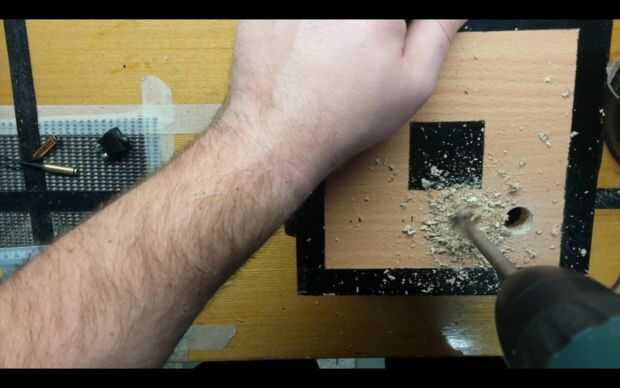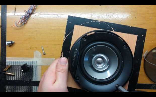Si tenía la caja, o hecho. Luego a los lados tienes que taladrar los agujeros para los altavoces. Medir lo que se necesita y corte los orificios. Es bastante simple proyecto. :)