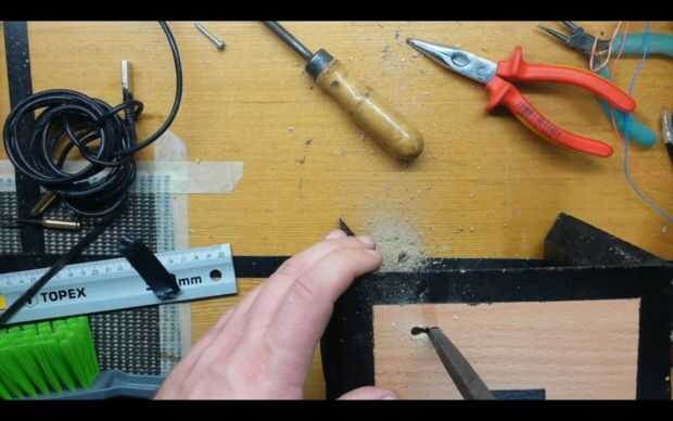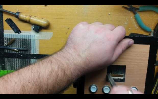 Siguiente fink sobre la colocación de la pantalla. Mi frente o la parte superior era opciones obvias. Otra vez me decidí por la parte superior. Otra vez, mismo procedimiento. Algunos agujeros perforados y los cuadrados para arriba con un archivo.