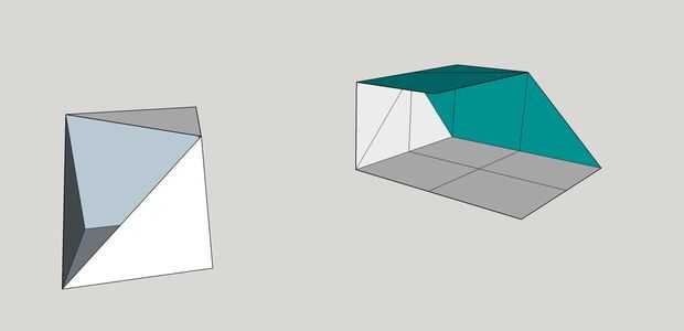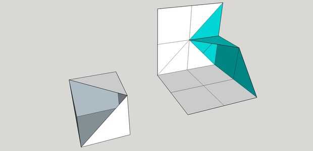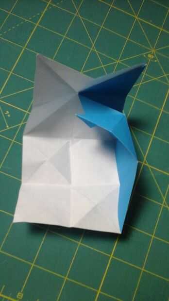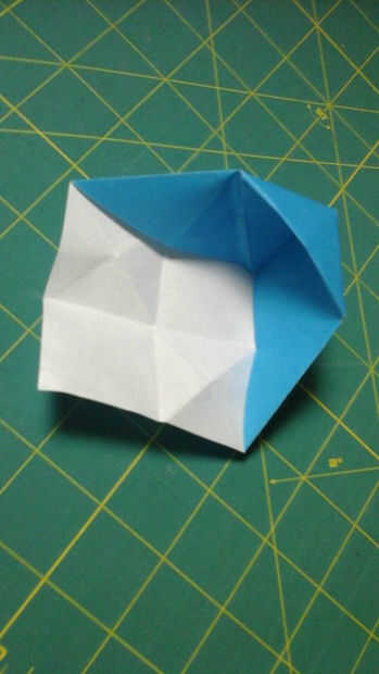 Abrir dos de las cuatro esquinas, para que dos esquinas se doblan aún con sus bordes de contacto como se muestra arriba.