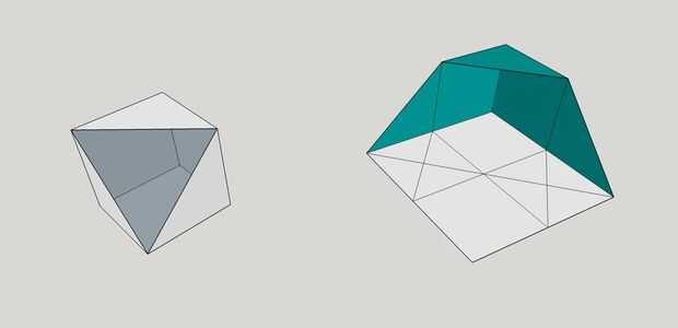 En la última imagen, las esquinas A y B se reúnen en el centro de la planta del cubo, escondido debajo de la aleta.
