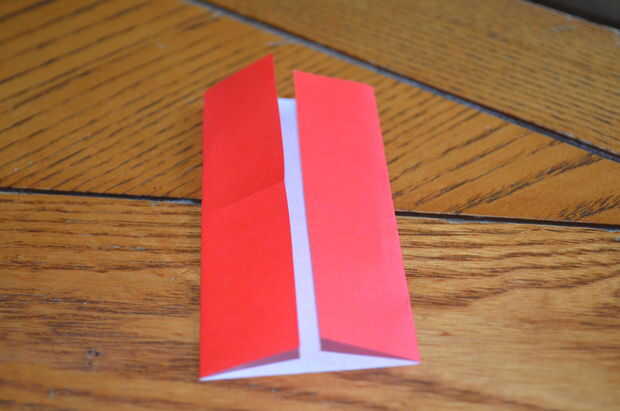 2) Pliegue los bordes del papel en uno de los pliegues que hiciste.