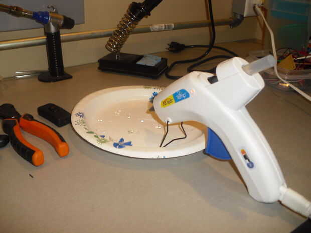 Ahora asignamos los tubos a la placa base con pegamento caliente simplemente poner el comedero de tubo el agujero y la longitud que desee luego poner pegamento caliente en la parte superior para mantener