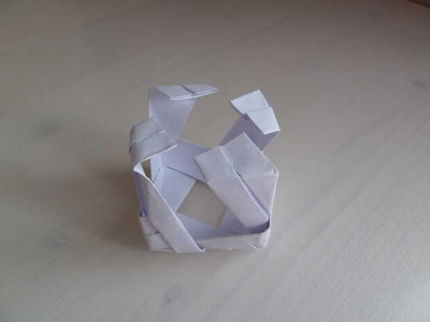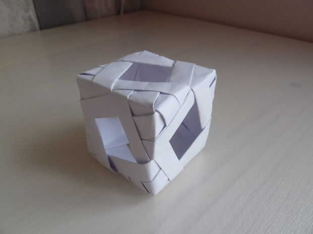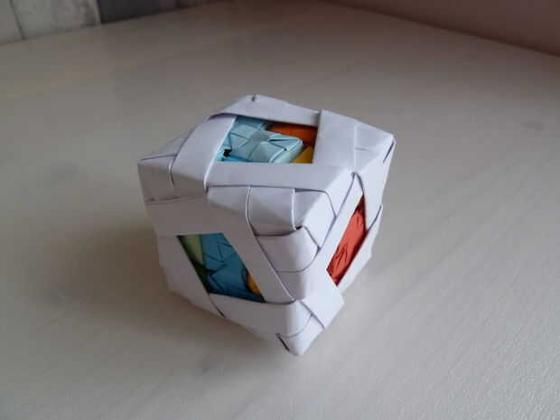 Para poner las manzanas, también quería hacer algo completamente fuera de papel. Me acordé de este instructable sobre cómo doblar un cubo de ventana de diamante y después de probar algunos encontré el tamaño que perfectamente los bloques de construcción.