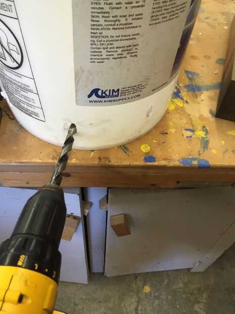 Perfore agujeros en el lado del cubo donde en la parte inferior del cubo.
