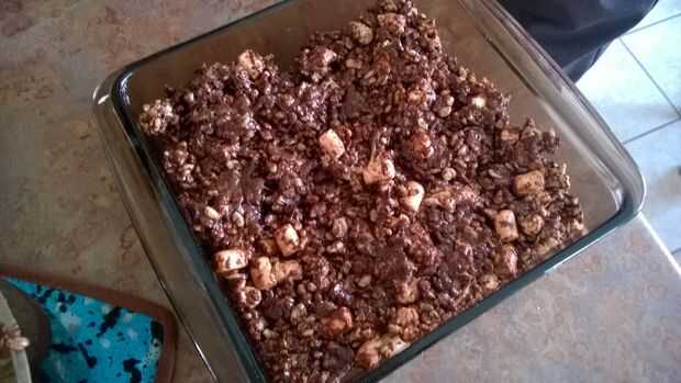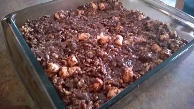 Difundir la nueva mezcla en un plato untado con mantequilla y presione con fuerza sobre la superficie a compactar todo. Voila! Todo está hecho. Ahora espera que se puede esperar a que solidifique un poco o te puede empezar a comerlo.