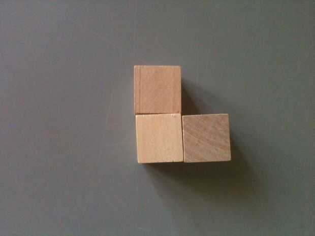 El primer paso: es crear dos, 2 por 2 por piezas en forma de L 1 como se muestra abajo--->