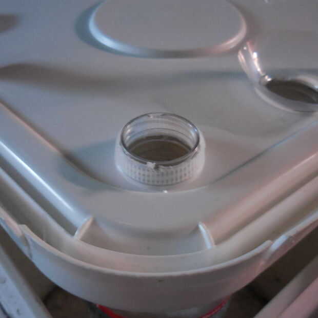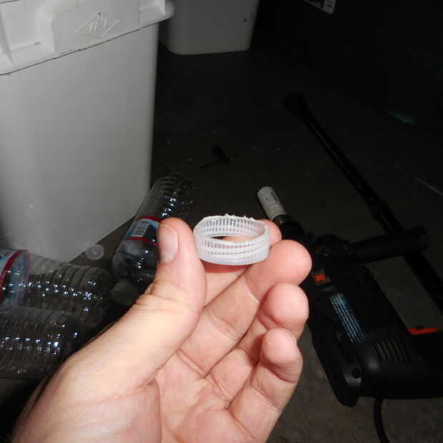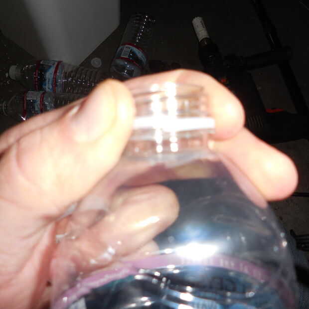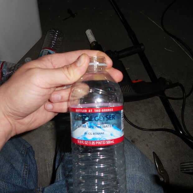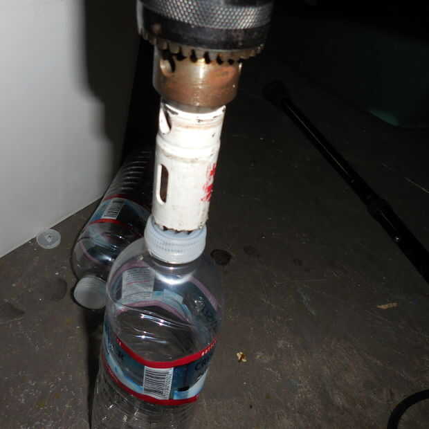 Usé el serrucho para modificar la tapa de la botella de agua para hacer un retenedor para el plantador.