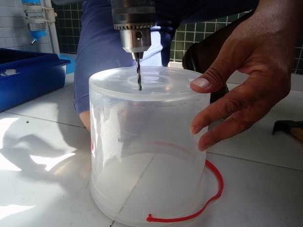 Con un taladro, hacer varios agujeros. El número de agujeros a voluntad determinado la cantidad de agua que se escapa, así que usted debe probar de vez en cuando.