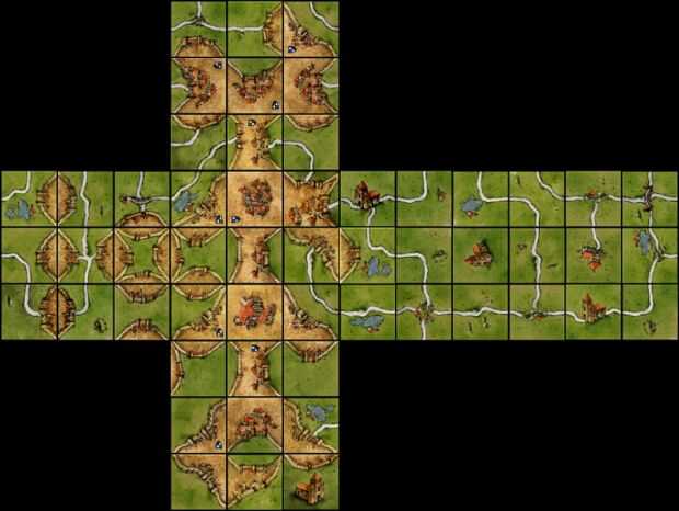Pero luego me di cuenta de que los azulejos de ciudad y carretera tiene un número impar de lados, así no se cerrarían el arreglo (relacionados con la teoría de grafos y problema de los puentes de konigsberg y así sucesivamente (http://en.wikipedia.org/wiki/Seven_Bridges_of_K%C3%B6nigsberg) y necesito sacar una ficha y duplicar otra para cerrar el arreglo entero). Pero creo que todavía es una buena selección.