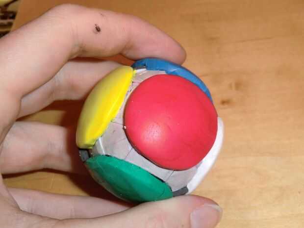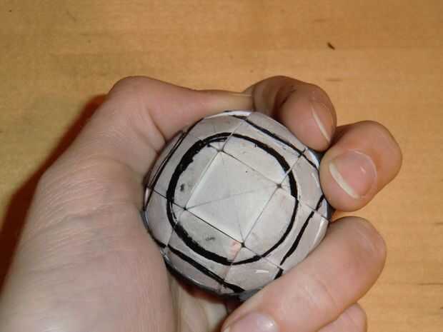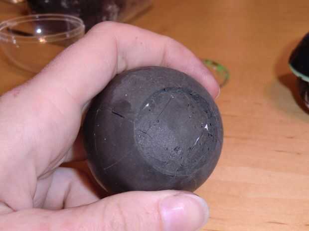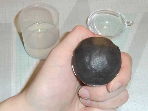 Ahora rellene los huecos con el sugru negro. Una vez que es curado, se puede lijar la bola, para conseguir un agradable un resultado uniforme.