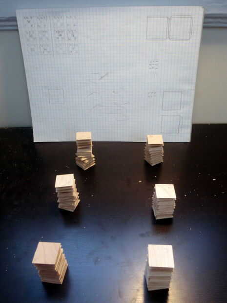 Una decisión fue que tipo de madera debe ser en cada cara exterior. Esto es bastante arbitrario, pero traté de mantener colores más similares frente a la unos a otros. También pensé en cómo debe orientarse el grano. Decidí que cada vez que dos caras se reunieron en un borde, el grano debe cumplir con perpendicular. También quería caras opuestas para tener el grano paralelo. Para las caras interiores, acabo de hacer el grano van en la misma dirección que las caras que fueron paralelo a.