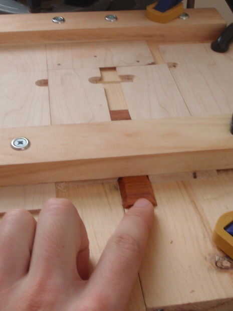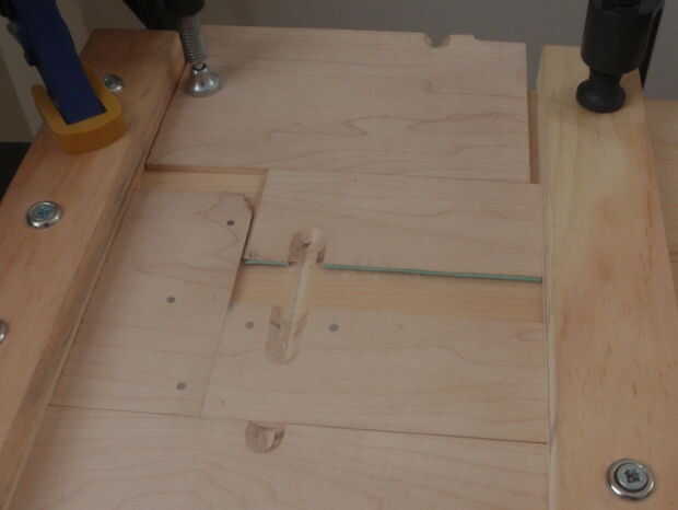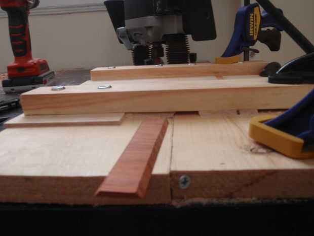 Lo más difícil era mantener la seguridad de la franja. No pude sujetar directamente, pero a menudo me empuje más profundo en la plantilla con otra tira por detrás y la abrazadera en su lugar. En mis primeros intentos, eso fue suficiente para sostener la franja segura. A veces, sin embargo, la Plaza sería floja una vez que fue desconectado del resto de la tira. Esto era un problema, puesto que si la Plaza confundida como el router bits pasa sobre él, el router puede tomar un bocado de la esquina o causar el azulejo de crack. Finalmente pensé en una solución simple a esto: corte una banda de goma y pegados a lo largo de un borde de la pieza lateral que sujeta la tira en su lugar. Esto grandemente aumentado fricción y había hecha para que la franja y el azulejo no se moverían mientras hacían el corte. La pieza con la goma no fue permanentemente, sólo sujeta, por lo que sería moverlo fuera del camino a Deslice la tira en y luego fijarlo con la abrazadera en el lugar.