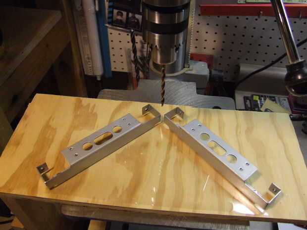 Después de fijar el primer soporte a un pedazo de madera contrachapada, utilicé un cuadrado para alinear la segunda abrazadera en 90 grados a la primera. Unos tornillos más y tenía un cuadrado casi perfecto.