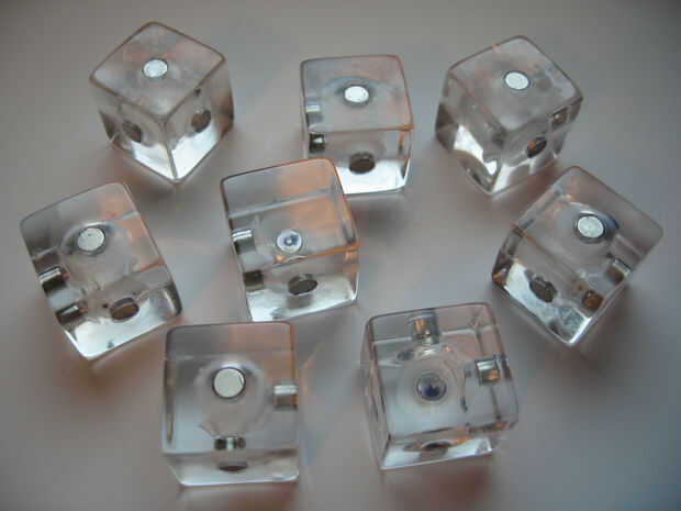 este proyecto es una versión modificada del cubo de Rubik magnético de acrílico de gfixler y usos rojo translucido dados en lugar de cubos de acrílico transparente. Le doy crédito por el dado idea de ella y andyholloway, que iban a construir un dado