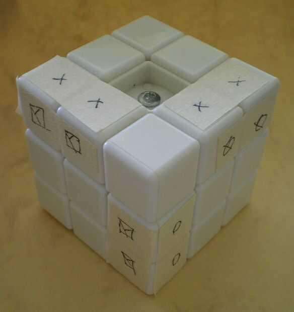 tuve un repuesto Rubik cubo colocación alrededor y parecía lamentablemente sin modificar. Lo que fue la parte fácil; No tengo ni idea de cómo resolver algo como esto.