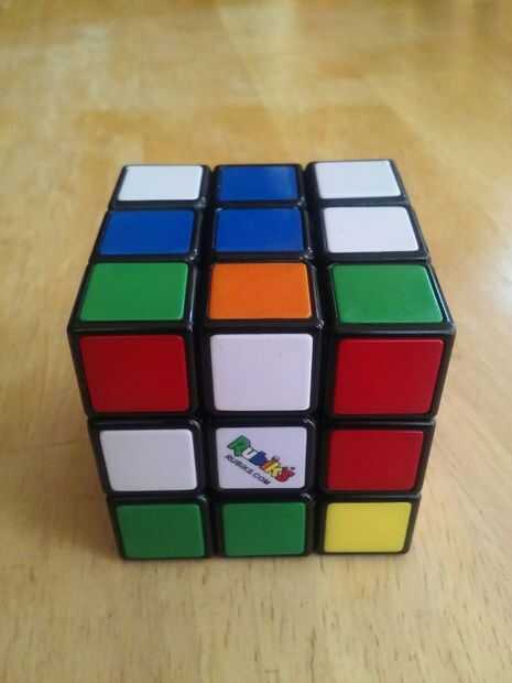Un cubo de Rubik es un rompecabezas de mano. Cada una de las seis caras tiene nueve cuadrados de seis colores diferentes. Las caras o bien pueden girar en sentido horario o antihorario, por lo que después de pocas vueltas hay varios colores en cada c