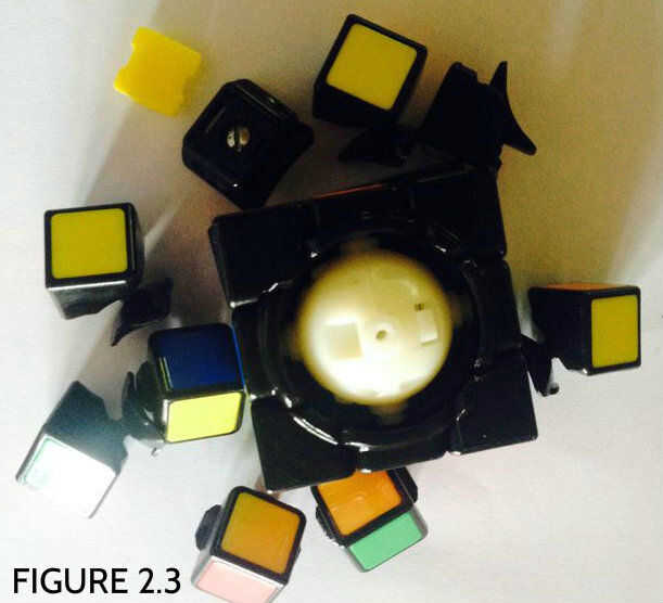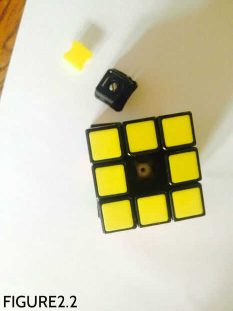 Cuando haya completado todos los pasos que debe haber una pieza similar a la foto de arriba (fig. 2.4). Sólo trabajamos con esta pieza central, por lo que se pueden colocar todas las piezas de colores con seguridad fuera del camino.