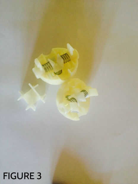 Te darás cuenta que la pieza central en las manos tiene cuatro cuñas pequeñas que sobresalen de los lados de la esfera. Coloque sus dedos índice y pulgar sobre estas cuñas y apretón, eventualmente usted empuja y la bola se partió en dos... No has roto... Sacar el divisor central y lo quede se verá como la foto de arriba.