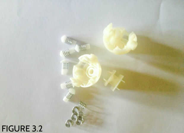Después de cambiar los resortes es el momento de volver a la esfera central, así que empuje todos los tapones cilíndricos pequeños en el lugar y junte nuevamente las dos mitades.