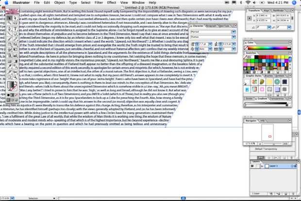 el proyecto de "Origen de las especies - colgante de pared" hace un buen uso de máscaras de opacidad en ilustrador, incrustar una imagen en un campo de texto cambiar la opacidad a lo largo de. Pero quitando esto puede ser difícil de averiguar. E