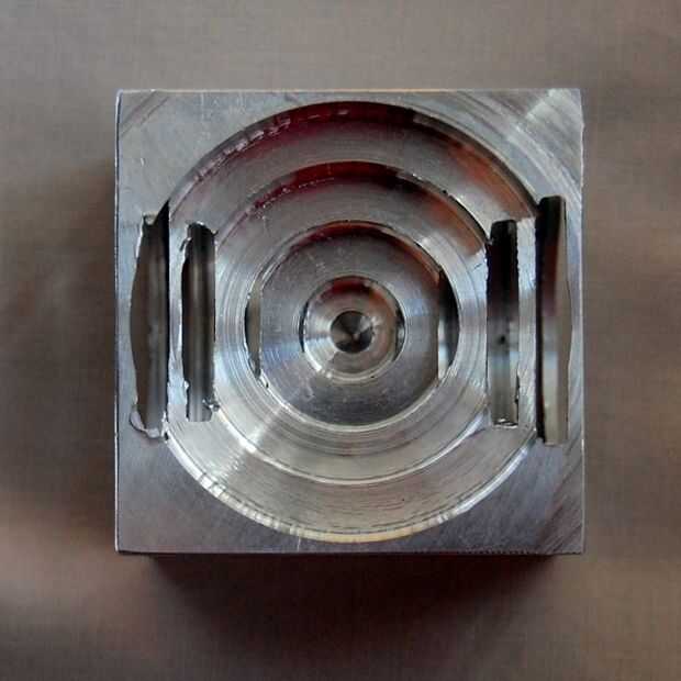 I calcula los cubos que 1.900, 1.520, 1.140, 0.760 y 0.380. Los taladros son 1.800 x 0.190, 1.350 x 0.380, 0,900 x 0.570 0.450 x 0.760, y el agujero es una broca de 13/64 (~ 0, 200). Los diámetros de corte son 2.250, 1.725, 1.150 y 0.600