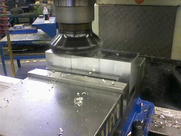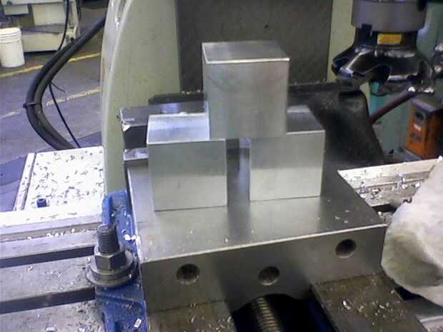 Así que comienza marcando en la fresadora y el vice, luego tomar su culata de aluminio y permite empezar! Es bueno conseguir material largo (mi acción era 2x2x6.1) para que puedan hacer los cubos múltiples al mismo tiempo. Hice 3 cubos en un poco más de una hora.