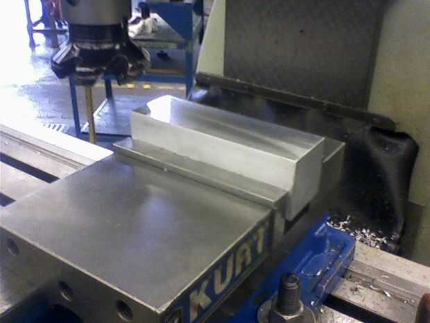 Nota: Puede que necesite paralelos para este paso. La mordaza mordazas usé eran 1.75 en, y el cubo iba a terminar en 1.900, así que pensé que necesitaba un poco más espacio y utiliza paralelos. Paralelos son también útiles, porque puede mover para ver si el cubo es realmente plano, si mueva, entonces el fondo no es paralelo a la parte inferior de la mordaza.
