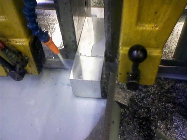 En este punto, si tienes un pedazo largo, como si me hubiera, llevarlo a la sierra y cortar en trozos. Deja sobre 0.100 extra que se mecanizará (por lo que tiene 1,9 x 1,9 x 2 cubos). Llevar sus cubos al molino por la cuadratura de los últimos 2 lados.