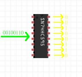 Un registro de cambio es un IC que salidas como señales paralelas y "cambios" en los datos en serie (una serie de bits, tales como 100101101). Por ejemplo, si la frambuesa Pi envía una señal de bytes de largo (1 pieza de datos que 8 bits de largo) en el registro de desplazamiento, se convierte en 8 señales paralelas (8 piezas de datos que son 1 poco largo cada una) y utiliza las señales directamente los LEDs.