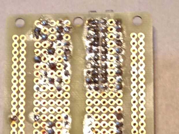 - 10 cables de soldadura a través de la placa, para crear 10 filas totalmente conectadas