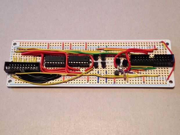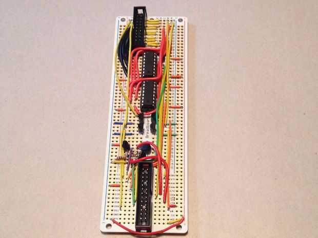 Este paso es bastante complicado, así que mucho cuidado con la soldadura. Consulte el esquema sobre Fritzing para cableado. Si has estado siguiendo este Instructable exactamente, a soldar sus componentes en un protoboard-diseño PCB, que significa que puede seguir el esquema de Fritzing directamente. El archivo Fritzing también se adjunta a este paso, si desea descargarlo y mirarlo en tu computadora (realizar una inspección de la dirección de conexión!). No se olvide de soldadura zócalos IC en lugar de las ICs reales; Si algo sale mal es mucho más difícil quitar ICs de un PCB de una toma de corriente.