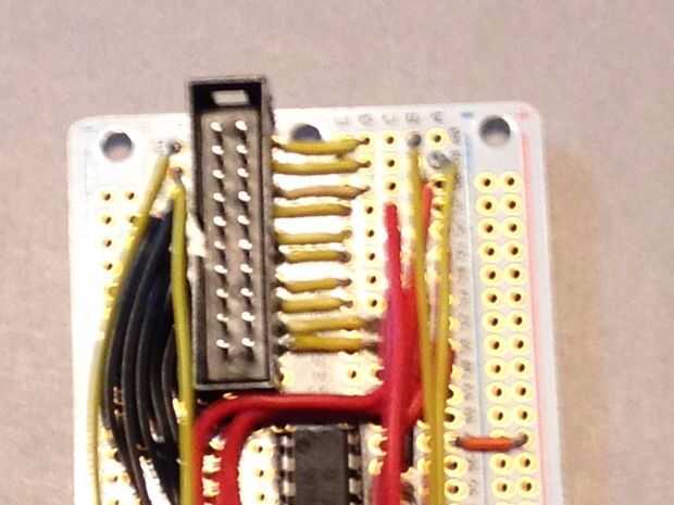 La parte más delicada de este paso es soldar los conectores de cable de cinta. Al soldar el conector de 26 pines, asegúrese de que va en la sección de toma de frambuesa Pi de la protoboard, con la muesca toda frente a la derecha. Soldar el zócalo 20 pines es incluso más complicado, sin embargo, porque no hay ningún lugar fácil soldar en.
