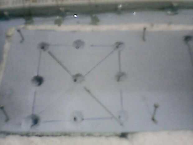 Para la construcción de las capas de LED necesitamos una plataforma. Tome un pedazo de tabla y thermocol. Coloque el cuadro de arriba el thermocol. Luego dibuje un cuadrado de 5 x 5 en gráfico hacer agujero en todos los bordes.