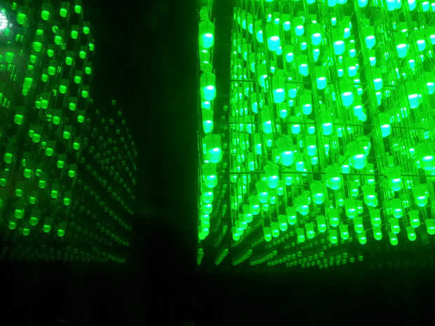 Para crear la simulación y el código para la pantalla utiliza el software v6 de Flowcode y todo lo que necesitaba para crear una obra maestra tenía. Comencé por crear una esfera en el panel, lo que es invisible y entonces usando la API de simulación para clonar la esfera suficientes veces para que coincida con la X, Y y Z dimensión propiedades. Luego, continué sobre la creación de rutinas que me permita obtener y establecer el color de cada esfera individual. Esto luego me permitió generar la línea y el cuboid dibujo rutinas así como las macros cambio y giro un poco más complejas. Mediante el uso de un componente de LCD gráfico anterior era capaz de rasgar hacia fuera la macro de texto dibujo y añadiendo finalmente un doble almacenamiento en búfer sistema la parte de simulación de la componente fue acerca de función completa.