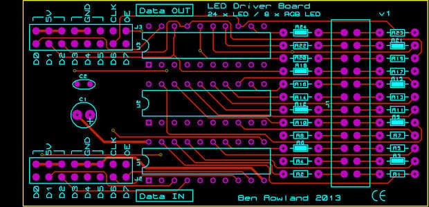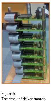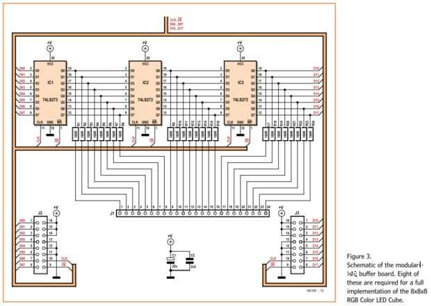 En la figura 3 cada uno de los 8 × 8 LEDs en un solo segmento es conducido por medio de nuestra cadena de tampón de ICs.