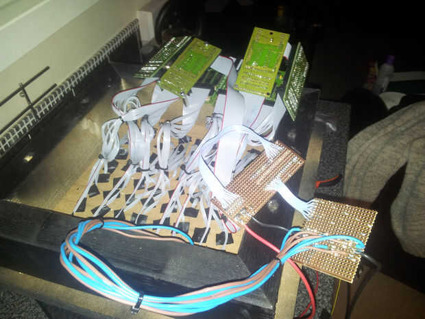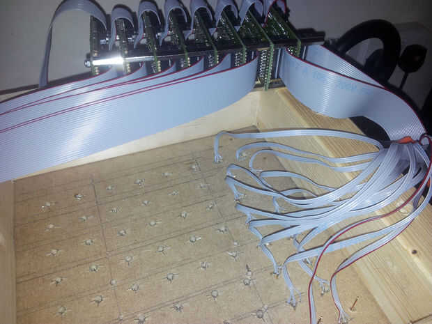 El cubo una vez completamente montado es bastante fuerte pero todos tomaría sería un poco de peso aplicada en un lugar equivocado y todo que trabajo se arruinó. Usé la misma pieza del tablero del MDF que solía crear mis plantillas y orificios de 5 mm en esta en el tono correcto para las piernas de la fila inferior de LED para ir a través de MDF. Para trabajar el lanzamiento tomaron medidas de exterior izquierdo LED para exterior derecha condujo a ambos lados del cubo y promedió el espacio a continuación, repite de adelante hacia atrás. Luego perforé otro