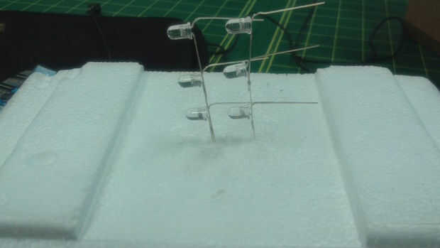 3組完成したら発砲スチロールに完成したマトリクスを刺し、高さを調節しつつ歪んでる部分を修正します。