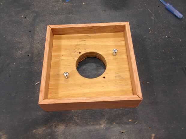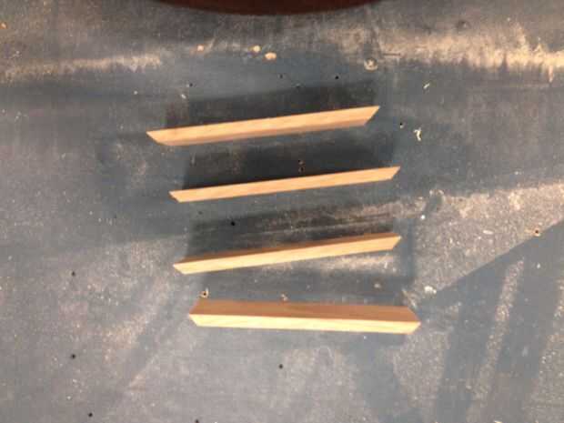 Después de cableado su portalámparas quitarlo usando una sierra de inglete corte 45 grados cortes en el 1 1/2 "x 1/4" pieza para hacer una base. Siguiente usando pegamento y una clavadora asegurar la base