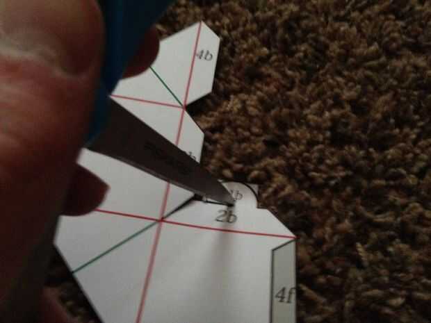 Doblarlas hacia atrás a lo largo de la línea verde y pegar hacia abajo. Si está usando un palillo del pegamento, pizca cerrado durante 20-30 segundos. Si usas pegamento líquido, lo siento...