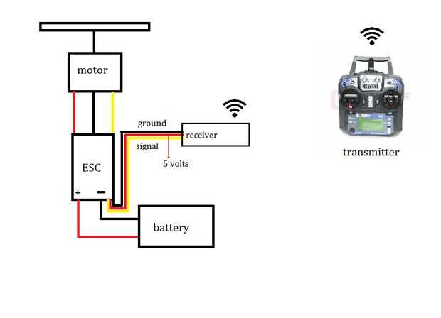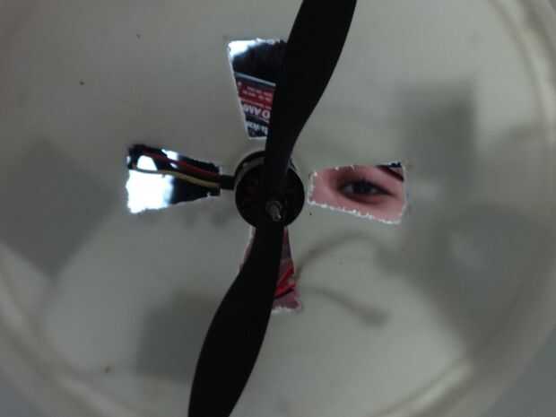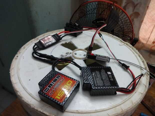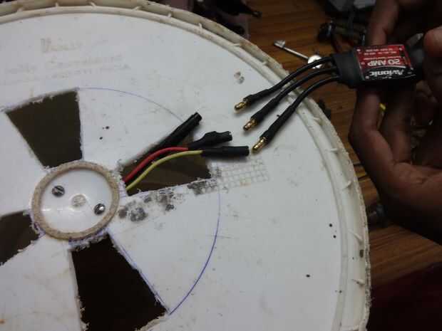 Conecte la salida al motor, si encuentra que la hélice se invierte (aire que sopla de las aberturas) tienes que intercambiar los dos cables de salida al motor. Esto debe cambiar la dirección del aire motor y sople hacia fuera la manera correcta. Para probar la conexión sistema ESC a un receptor (cualquiera funciona) y el control a través de un transmisor. Ahora coloque la mano delante de los orificios de ventilación y ver si hay un flujo de aire, si no que se revise si hay fugas.