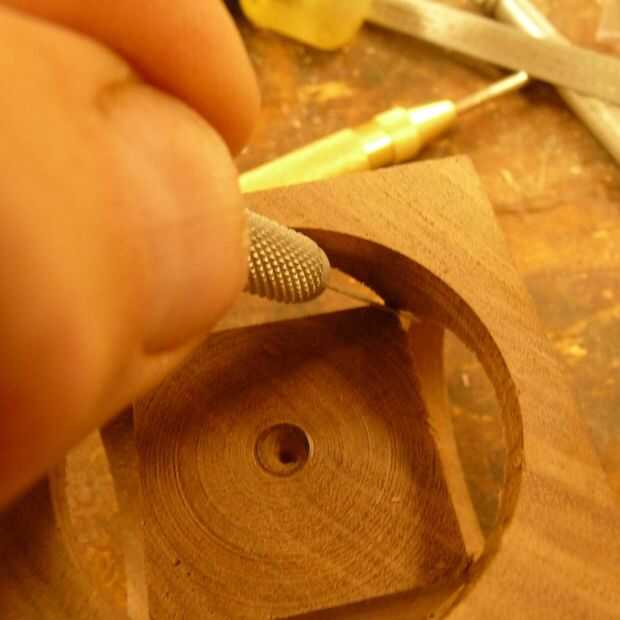 Perforación willleave de seis lados todos un cubo interior atacado por las ocho esquinas. Redrill los seis orificios, 1/32" más profundo para hacer estas conexiones de las esquinas más pequeñas. Repita esto hasta que las conexiones han casi desaparecidas. Luego corte con un cuchillo. Ahora tienes un nuevo cubo un poco menos del 1-1/2" en un lado.