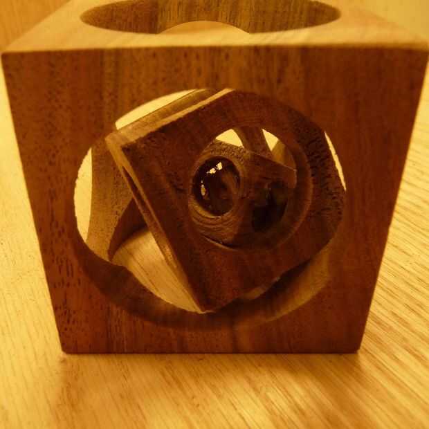 Ahora tienes un nuevo cubo de 3/8" en un lado. Limpiar todas las aristas y caras con lija de grano 120 y ahora tiene un cubo en un cubo en un cubo en un cubo. Qué podría ser mejor excepto tal vez...