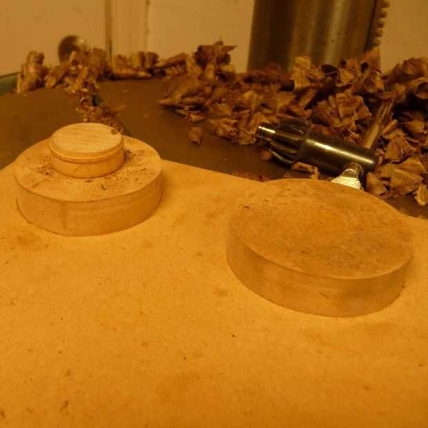 El cubo más interior de la perforación requiere un accesorio en la parte superior la lámpara anterior que todos listo hecho. Duplicar la primera luminaria. Que este nivel de adición requiere 1" un círculo de diámetro 3/8" de alto. Una rebanada de un taco sería excelente para esto. Ahora tienes una plataforma para sostener el cubo más interior en su lugar mientras taladra la siguiente serie de seis agujeros.