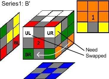 Esto mueve BL a la trasera izquierda inferior del cubo para custodia y BR en la posición original del BL.