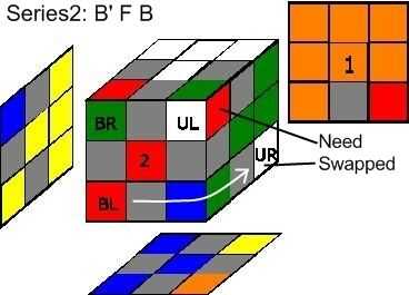 ¿El dedo índice se sigue en uno de los rincones que intercambia derecha? Poner esa pieza de esquina en la parte posterior. Esto mueve a BL volver a su original posición de BL y UR en la parte trasera inferior derecha del cubo. Observe también que UL ha sido colocada en la posición original de la UR.