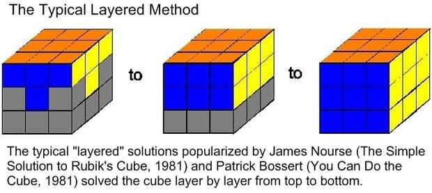 La gran mayoría de soluciones del cubo de Rubik son que todas variaciones de Nourse y de Bossert capas de solución. Este tipo de soluciones requiere un montón de movimientos y la serie de movimientos no es fácil de entender, por lo tanto confiar en la memoria muscular y son difíciles de retener sin una práctica frecuente. Los principales problemas en esa última rodaja – tener 2 rebanadas ya completadas, cualquier movimientos en ese último segmento no pueden desordenar lo que ya has hecho, por lo que los movimientos para terminar la última rodaja son difícil y desperdiciador de tiempo.