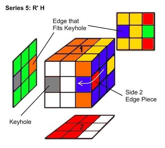 se mueve la "arista que se ajusta a la cerradura" en la parte posterior (y por lo tanto la diagonal "lado 2 borde pieza opuesto el"ojo de cerradura se mueve al frente)