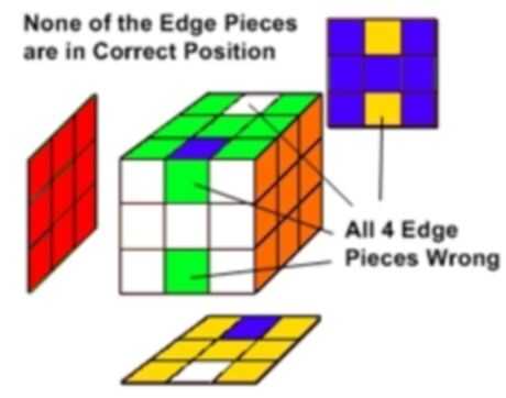 Si todos los 4 de las piezas de borde de centro están en las posiciones mal (recuerda el cubo de centro le dirá el color correcto):