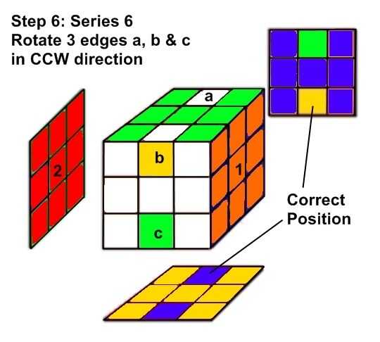 Series6 es una serie muy fácil de movimientos. Moverá las piezas de borde visible 3 por circular en una dirección CCW (mirando desde la derecha) mientras que el borde oculto no Haz movido y permanece en su lugar.