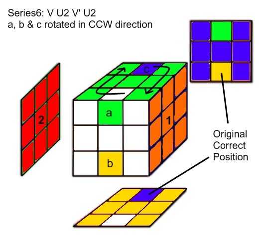 Si tuvieras una arista en la posición correcta y 3 que necesita para cambiar de posición, creo que sólo necesita hacerlo una vez Series6 y ésos 3 será subir CCW y final en la posición correcta. Pero no puedo recordar con certeza. Puede que necesite hacer Series6 otra vez si todavía no son correctos, o usted puede terminar con una condición de paso c de 6.